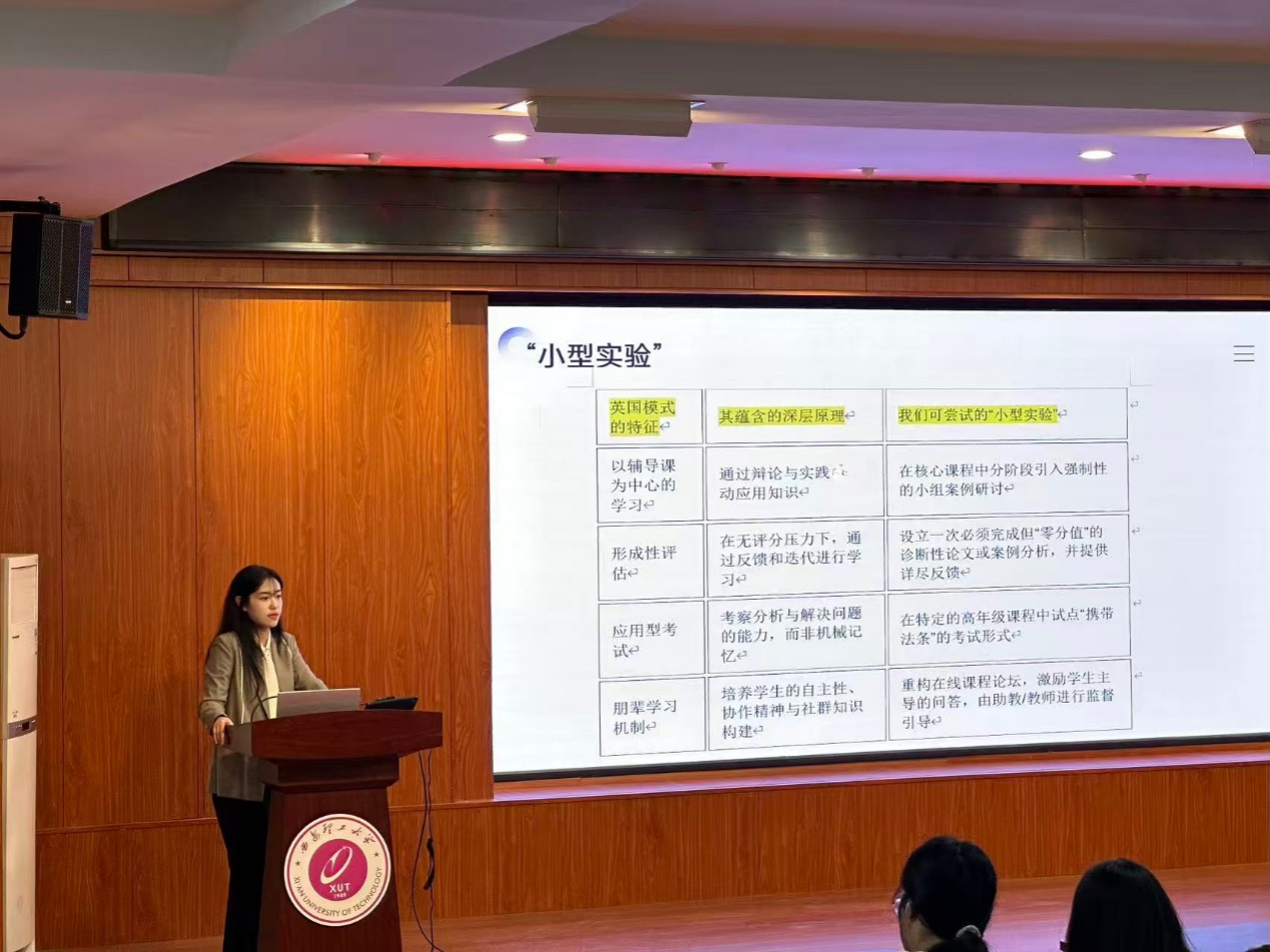 张雯老师结合自己作为访问学者的亲身经历,从一份详实的英国大学课程手册切入,为在场师生系统梳理并深度剖析了英国法学教育模式的内在特征与深层逻辑。通过生动的案例和详实的数据,深入阐述了这些特点背后所蕴含的教育原理。理论探讨之外,张雯老师还立足我系实际,提出了若干具有建设性的“小型实验”构想,这些具体的建议引发了在场学生的浓厚兴趣和深入思考。