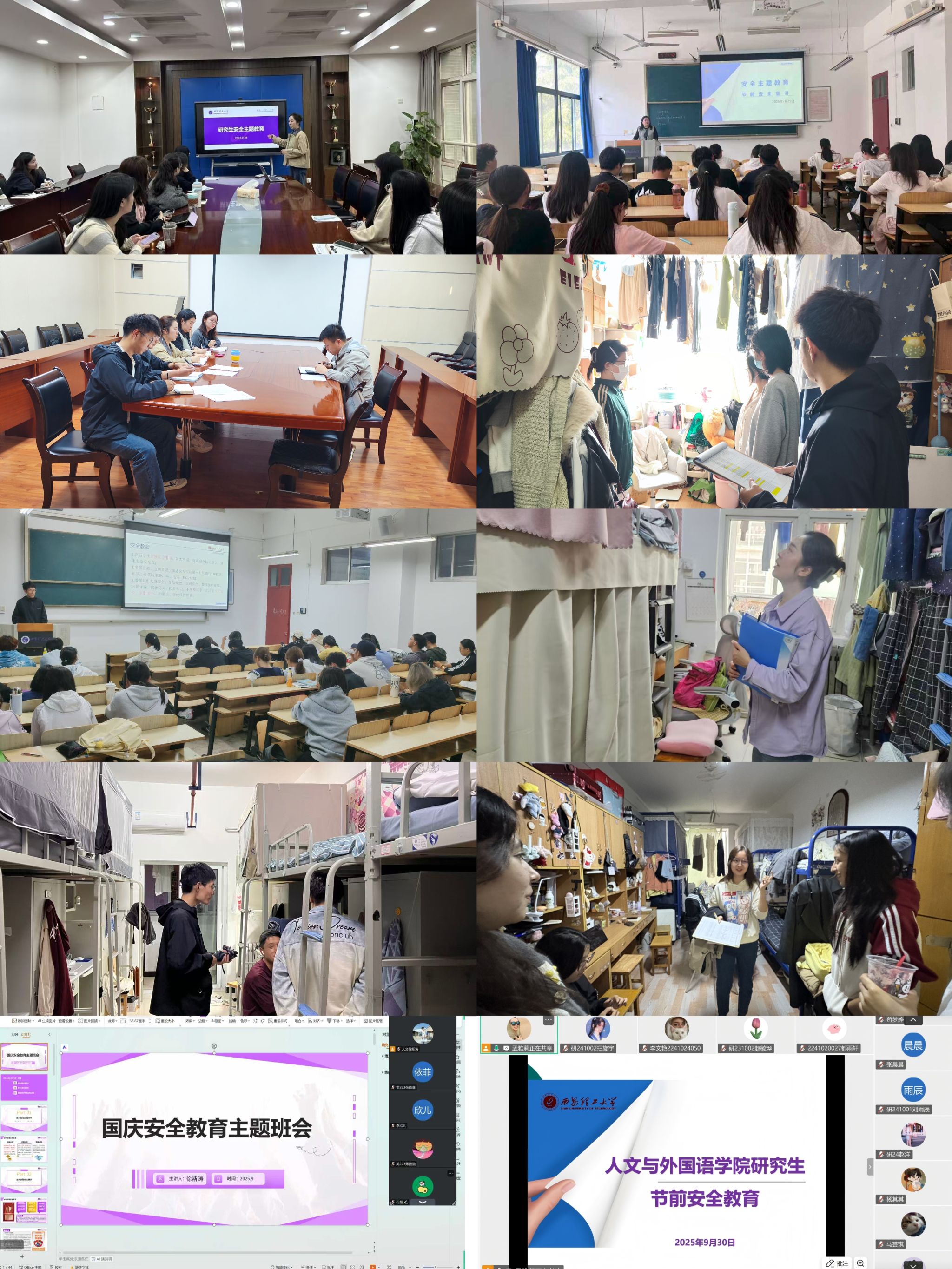 赵玉强副书记主持召开节前安全专题会议,传达了学校关于做好国庆假期学生教育管理工作要求,对假期安全工作进行了全面部署,要求辅导员精准掌握学生去向,关心关爱重点学生群体,节假日期间要严格落实值班备勤制度,做到即时响应,有特殊情况及时上报。各年级辅导员开展了安全主题教育,教育内容涉及网络安全、消防安全、交通安全、饮食安全等,以此提升学生的防范能力。辅导员老师们深入学生宿舍,开展宿舍用水用电安全和卫生隐患排查,逐一走访并对发现的安全隐患进行现场整改。