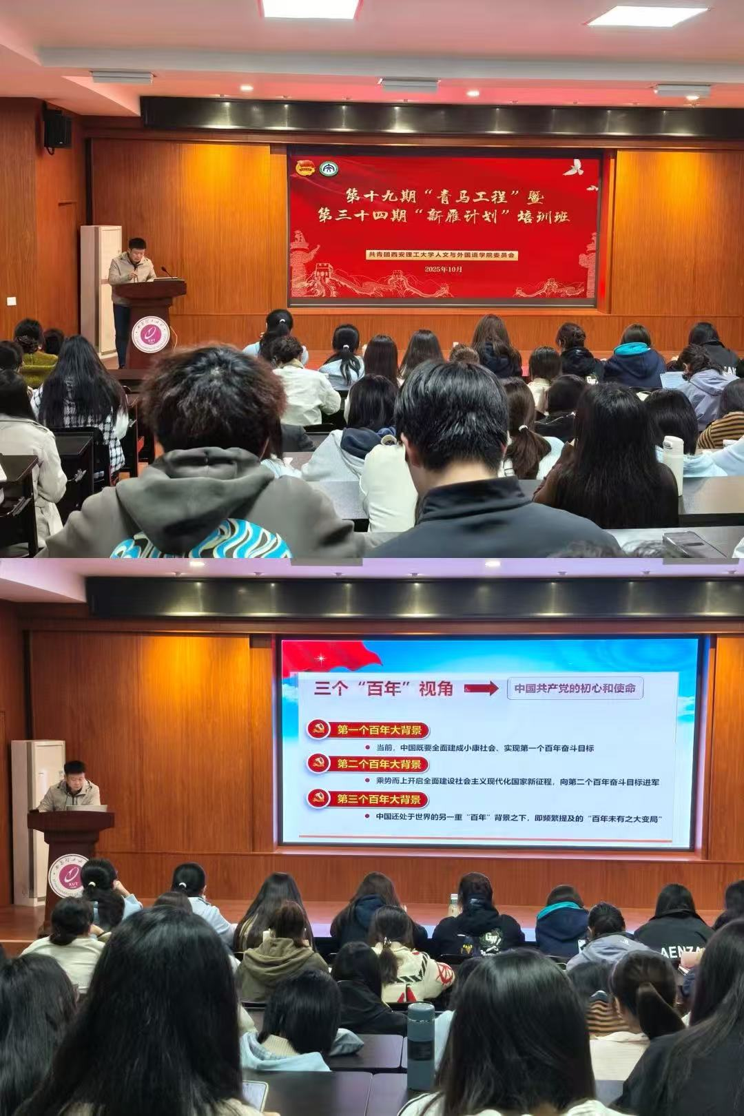 为深入学习贯彻习近平新时代中国特色社会主义思想,加强对青年团员与学生的思想政治引领,夯实基层团组织建设,10月26日,bv1946伟德官网团委在教11楼模拟法庭举办第十九期“青马工程”暨第三十四期“新雁计划”培训班。学院党委副书记赵玉强作首场专题报告,学院入团积极分子、青马班学员及2025级全体新生共同参加。