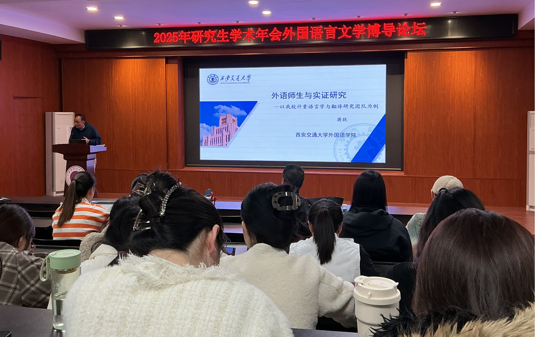 2025年11月13日下午,西安交通大学外国语学院博士生导师、富布赖特学者蒋跃教授应邀莅临我们,开展了题为《“从感性的理解”到“理性的解码”-外语专业师生的科学素养与跨界成长之路》的学术报告,学院全体外语专业教师和研究生现场参加学习,报告由黄勇副院长主持。