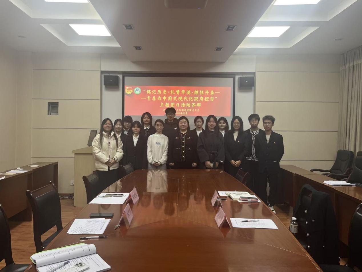 在答辩展示环节中,各团支部以多元视角和创新形式充分展现了新时代青年的精神风貌与责任担当。预科251团支部围绕“铸牢中华民族共同体意识”主线,组织开展民族文化交流活动,有效促进民族团结与文化共融;日241团支部聚焦“坚定文化自信”,精心设计传统文化体验环节,激发青年一代的爱国情怀与身份认同;法251团支部结合专业所长,推出“法治中国·青年力行”系列活动,实现专业知识与社会实践的有机融合,彰显了学以致用、服务社会的青年担当。学院团委书记周莹老师在点评中指出,各支部活动策划周密、组织有序,展现了新时代青年善于思考、勇于实践的特质。她希望各支部继续发挥专业优势,打造更具影响力的活动。