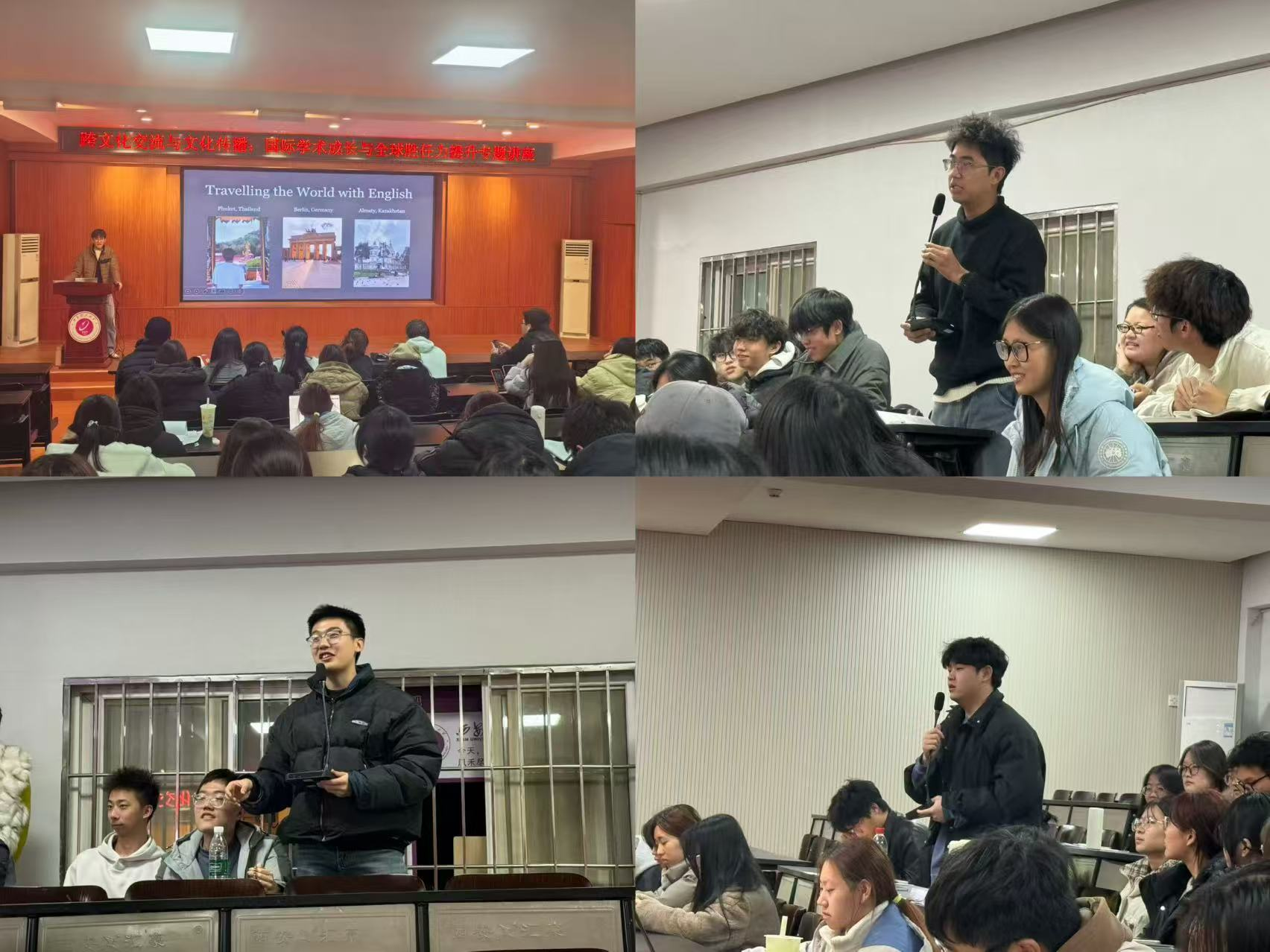 在分享环节,来自哈萨克斯坦的周传正同学以“Travel, Learn, Connect: The Power of English”为题,讲述了自己从不需要英语到借助英语打开世界之窗的心路历程,生动诠释了语言能力对拓展国际视野、融入全球环境的积极意义。